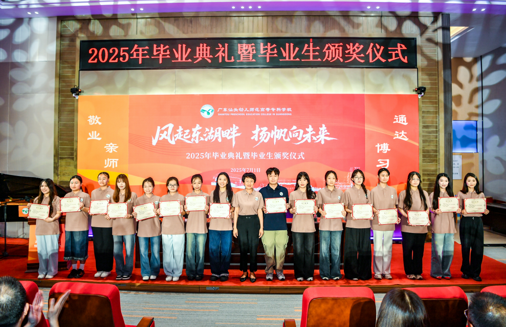 程拱胜书记为毕业生代表颁发了毕业证书,为2023-2024学年国家奖学金获得者颁发证书👀,赖洁玲副校长、郑少军副校长为2025届优秀毕业生颁发了证书。