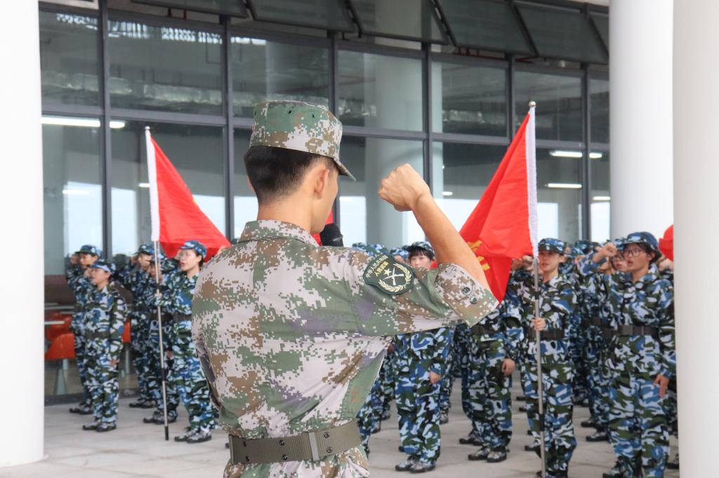 钟教官作为教官代表也对本次军训做了明确的要求,他表示一定不辜负全体领导及师生的殷切希望,保证顺利完成学校交代的各项训练指标,圆满完成军训任务。钟教官作为教官代表带领全体学生一起宣誓,场面十分振奋人心。