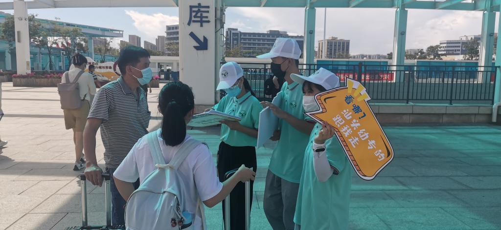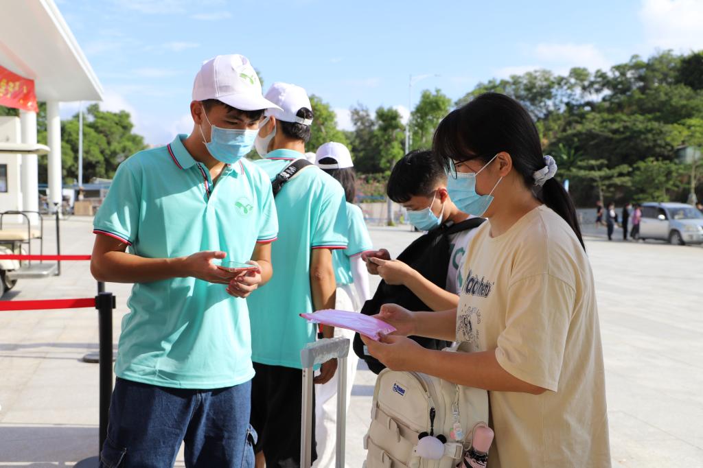 在汕头站🦫🧪,我们的迎新小分队早已等候在出口站前广场,迎接着同学们的到来。志愿者们在迎新点举着带有我校特色标志的牌子🦹♂️,在确认身份👭🏻、核查粤康码与核酸检测报告之后🧓,带领同学们来到校车大巴处,统一乘坐校车返回校区🫶🏼。
