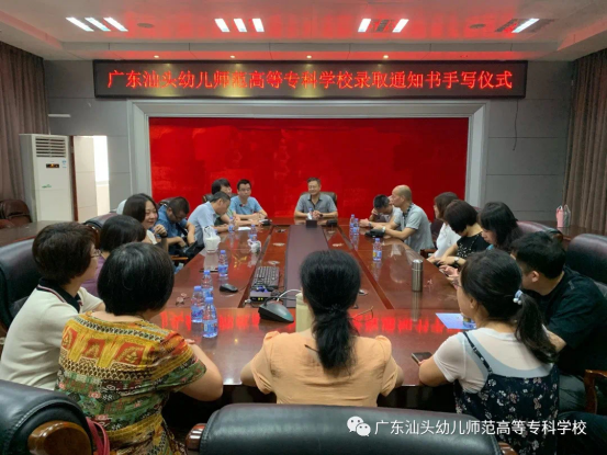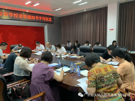 8月11日上午,彩神ll平台举行2021级新生录取通知书手写仪式,汕头幼高专的领导筹备组组长林育青、副组长夏晓忠、赖洁玲、郑少军,以及各专业的负责人和老师参加手写通知书仪式。