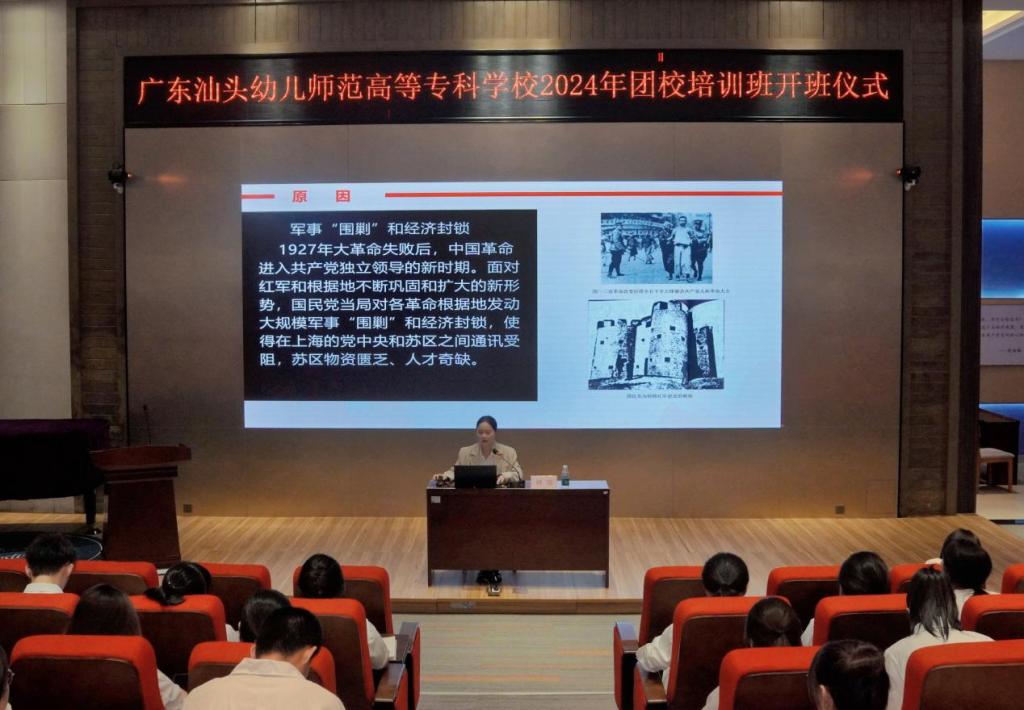 党政办公室负责人郑绍毅、校团委书记王熠、初等教育学院党支部书记🧙🏿♂️、院长张锋、艺术与体育学院党支部书记💁🏽♀️、副院长周雄平🎷、学前教育学院党支部委员、副院长黄泽仪🥙,校院两级团委老师出席开班仪式,共有约200名学员于学术报告厅一同参加团校培训班开班仪式👷🏽。开班仪式由校团委书记王熠主持。