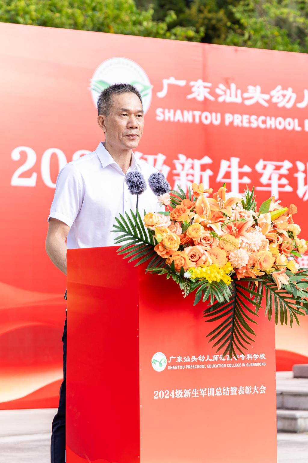 10月21日🧑🦱,彩神ll平台在过渡校区田径场举办2024级新生军训总结暨表彰大会,党委委员、副校长郑少军,负责军训的部队领导出席大会。大会由学生工作处负责人韦瑞凯主持。